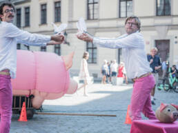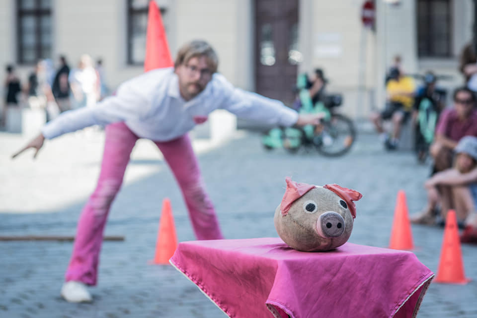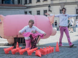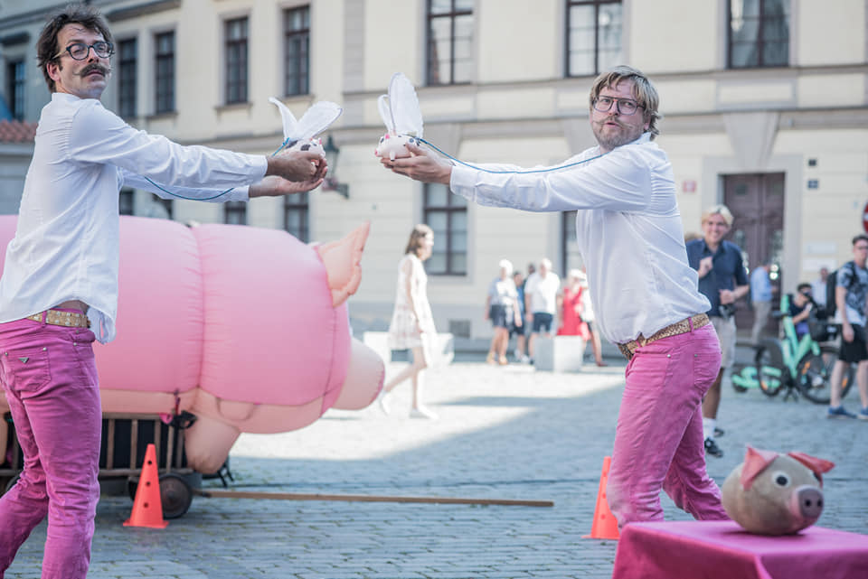 Přáli jste si někdy, aby prase mělo křídla? Prasečí cirkus vás vláká do světa dvou podivínů, kteří bezmezně věří, že kdyby to tak bylo, celý svět by byl krásnější! Nečekejte žádné chlívárny, čuňárny ani prasárny, pouze vkusný prasečí humor. Nechte se unést na prasečích křídlech a vězte, že z představení budou chrochtat blahem statní vepři, krásné bachyně i malá selátka, zkrátka celá rodina. Vzhůru s prasetem!