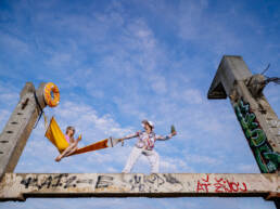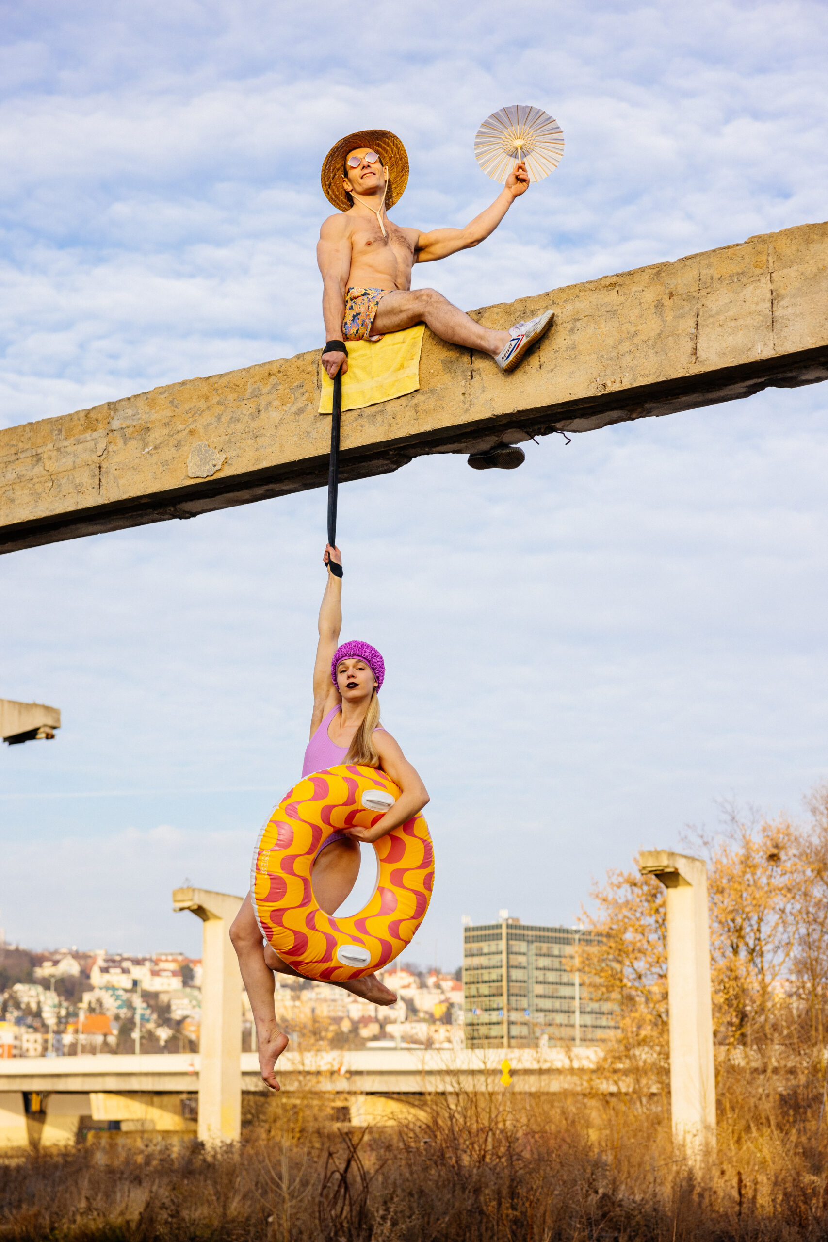 Tyč on the Beach je jejich první autorský projekt, v němž propojují jak své cirkusové disciplíny, tak rozdílné energie a přístupy k tvorbě