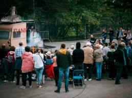 „Fiammiferi“ je vizuálně působivé a hudebně bohaté představení belgického souboru La Cie des Six Faux Nez, které vzniklo v roce 2021 jako volná adaptace Andersenovy pohádky Děvčátko se sirkami. Tři herci a hudebníci – Benoît Creteur, Barbara Moreau a Vincent Verbeeck – spolu s loutkou a mobilní „pop-up“ karavanou vytvářejí beze slov tragi-komickou podívanou, která oslovuje diváky všech věkových kategorií od 8 let.