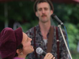 Duo Tiny Tall Tales, tvořené Anitou Gröbl a Richardem Kimberleym, propojuje hudbu s divadlem. Jejich vystoupení jsou charakterizována jako intimní a hravá, kombinující prvky folku, swingu a balkánské hudby. Díky svému bohatému zázemí v klaunském a fyzickém divadle dokážou vytvořit jedinečnou atmosféru, která vtáhne posluchače do přítomného okamžiku prostřednictvím sdílení milovaných písní a příběhů o lásce a odloučení.
